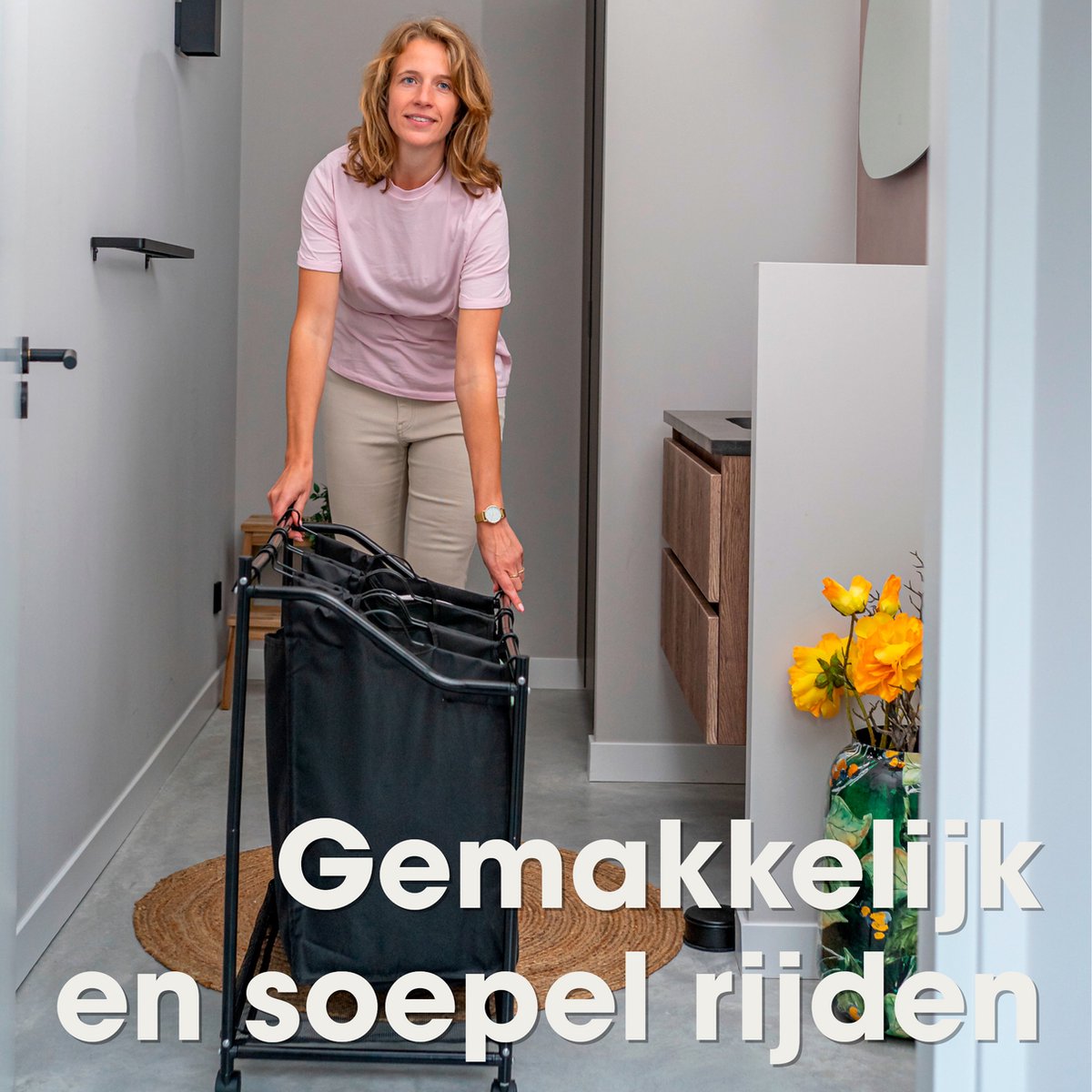Doordat de wasmand wieltjes heeft kun je er voor kiezen om de wasmand zelf naar de wasmachine te brengen. Of pak de waszakken uit de mand en neem deze gemakkelijk mee.