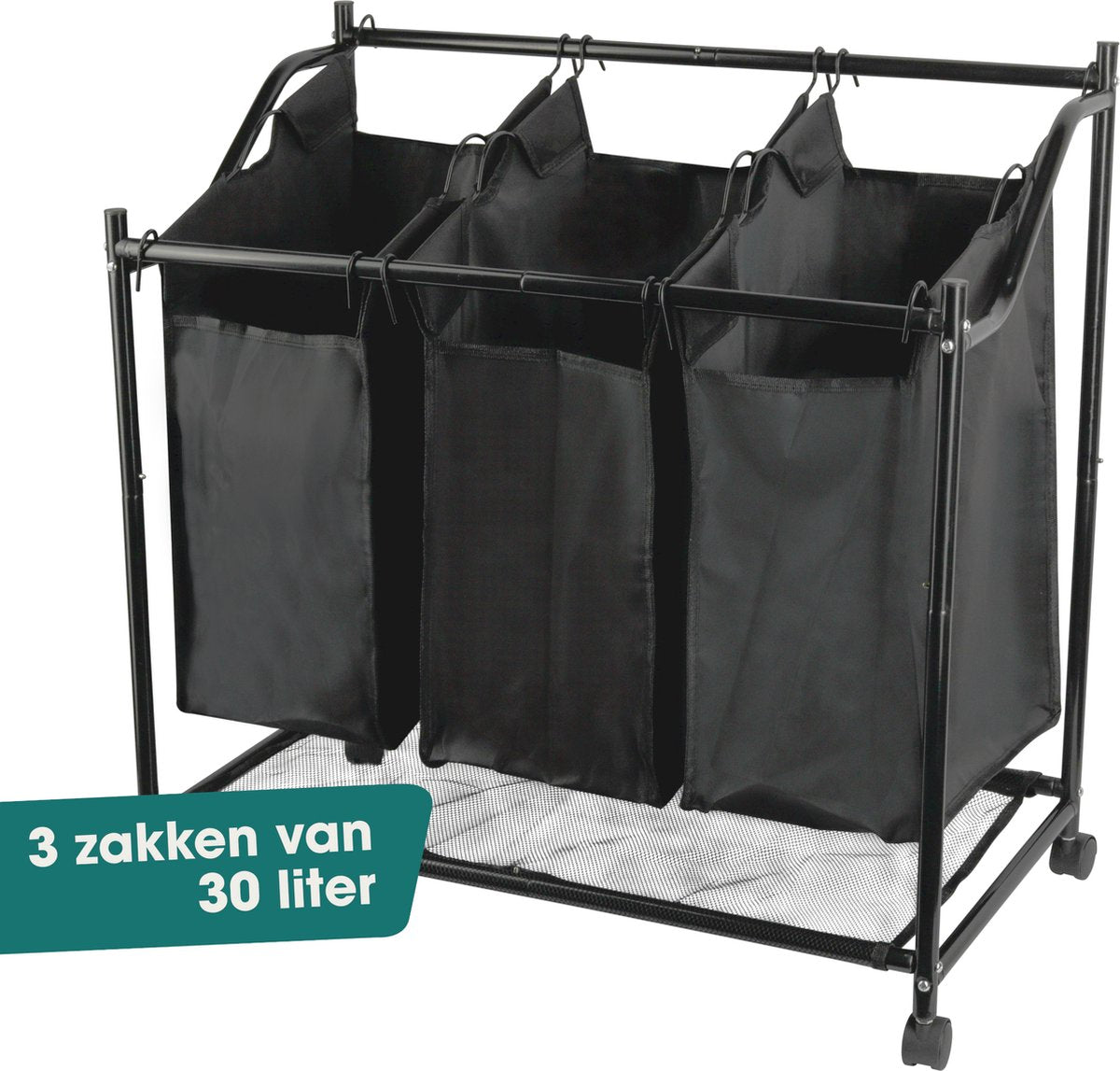 De was doen, wie heeft er geen hekel aan? Sjouwen met volle wasmanden, sorteren op kleur en daarna nog wassen en ophangen. Met deze wasmand 3 vakken van Wellewares maak je jouw wasroutine een stuk eenvoudiger. In de drie uitneembare waszakken van elk 30 liter kun je direct je wasgoed sorteren op kleur of soort en draag je de was eenvoudig naar de wasmachine waar het direct gewassen kan worden. Zijn alle zakken vol en woon je gelijkvloers? Dan kun je de wasmand in zijn geheel naar de wasmachine rijden.