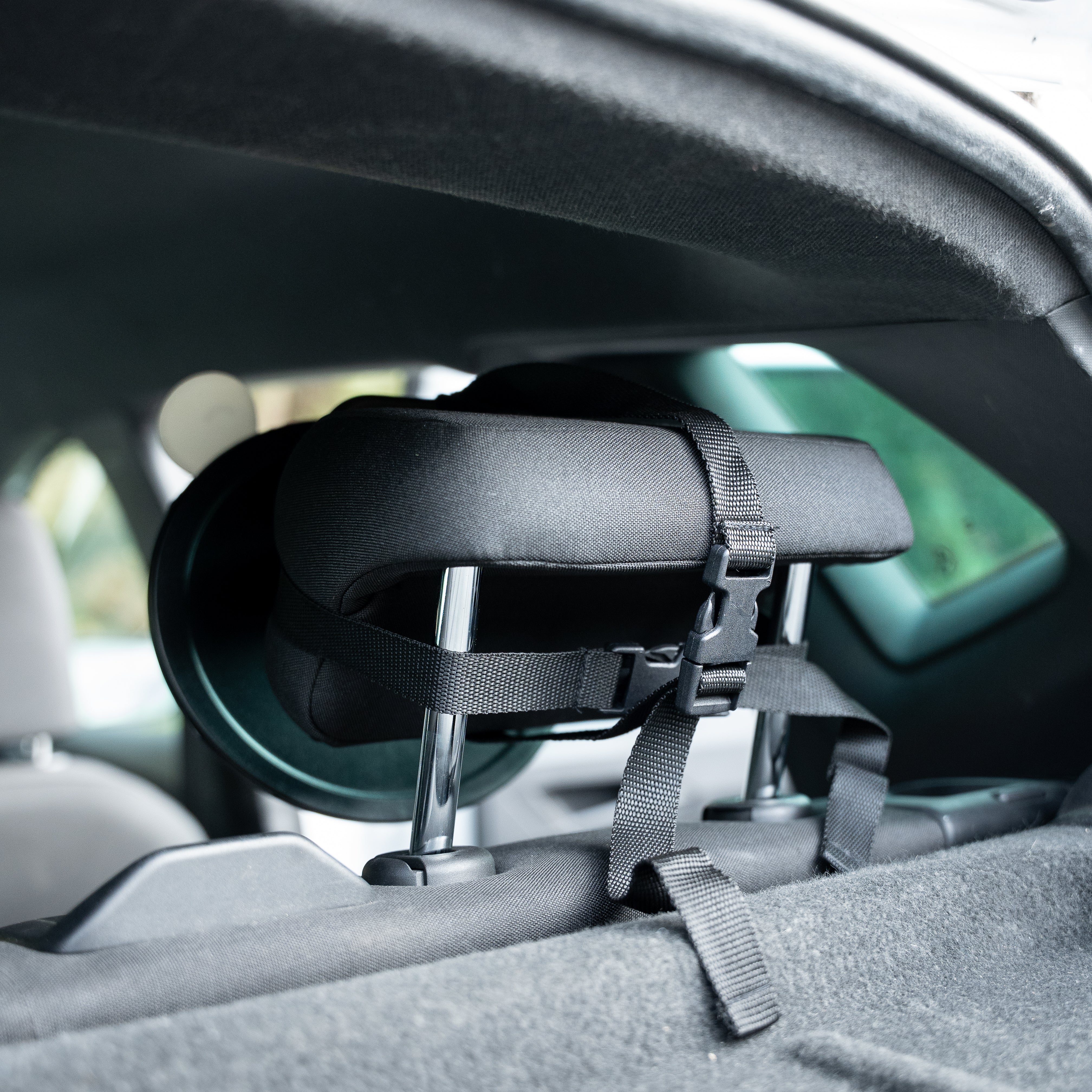 De autospiegel bevestig je snel aan de hoofdkussens van de achterbank. Een band om iedere kant van het hoofdkussen zodat de spiegel niet kan schuiven.