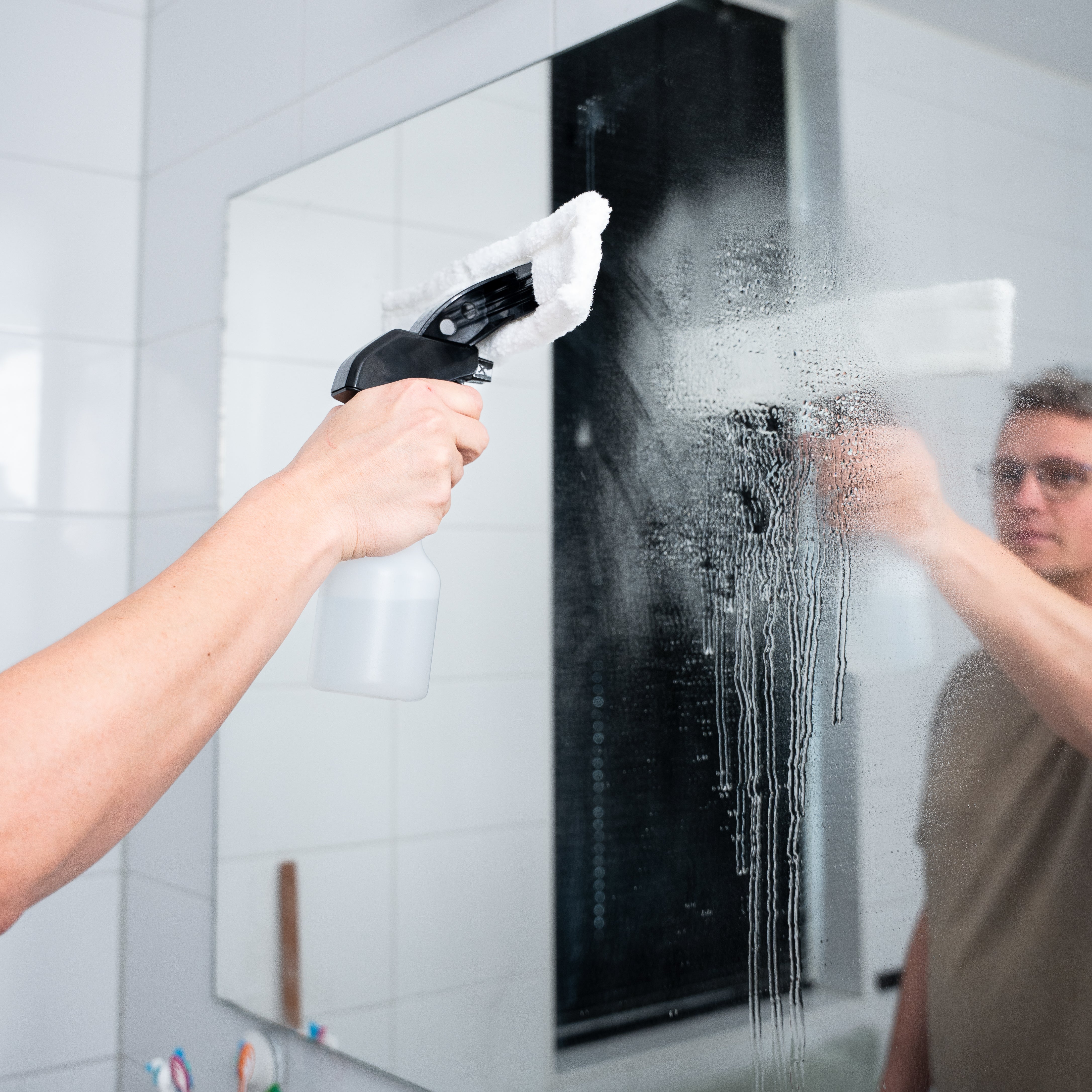 Glaswanden, douchedeuren, spiegels en kookplaten reinig je gemakkelijk. Je trekt de oppervlaktes streeploos schoon, welk oppervlak het ook is.
