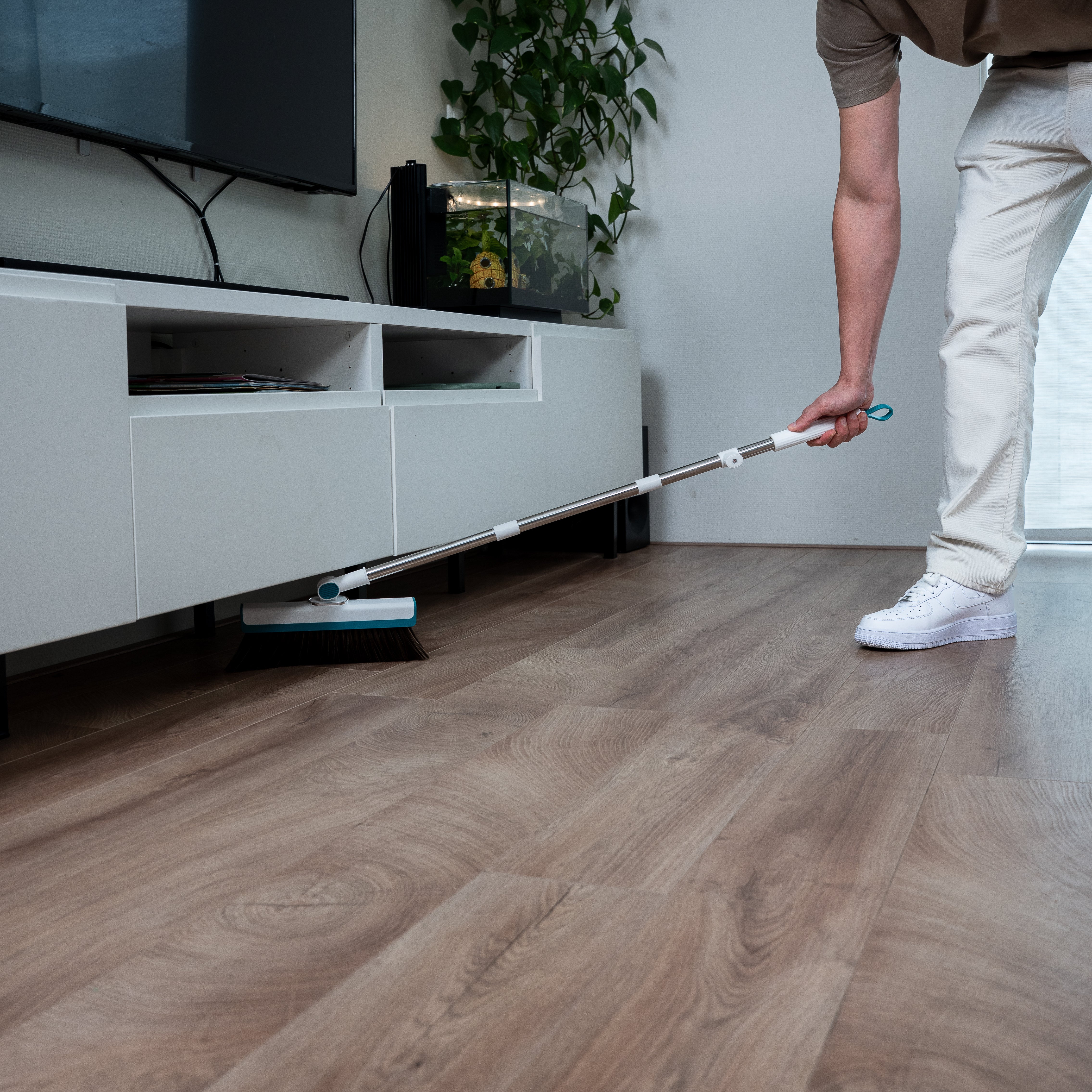 Handig voor kleine klusjes, onze stoffer en blik met lange steel. Pak hem er snel bij en klap hem uit, de borstel met 4 lagen veegt snel alle kruimels in de opvangbak. Veeg al het vuil uit de borstel met de tanden en met 1 druk haal je al het vuil weer uit de tanden. Wel zo schoon. Na gebruik klap je de opvangbak weer gemakkelijk.